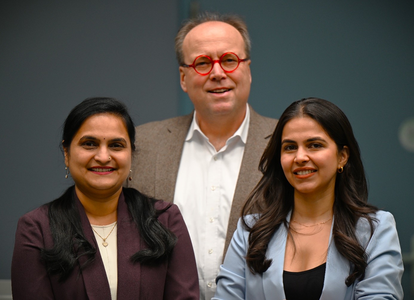 Prof. Dr. Andreas Günther (Mitte), Professur für Diffuse Parenchymatöse und Seltene Lungenerkrankungen der JLU, mit Arbeitsgruppenleiterin PD. Dr. rer. nat. Poornima Mahavadi (links) und Doktorandin Bhavika Brahmanand Katariya (rechts). Bildnachweis: Andreas Günther.
