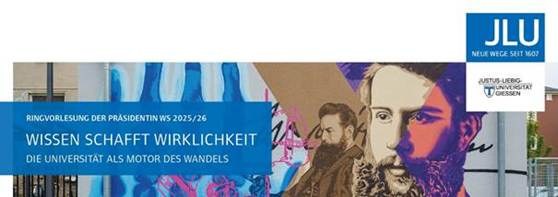 • Teil der Ringvorlesung der Präsidentin der JLU im Wintersemester 2025/26. Thema "Wissen schafft Wirklichkeit – Die Universität als Motor des Wandels"