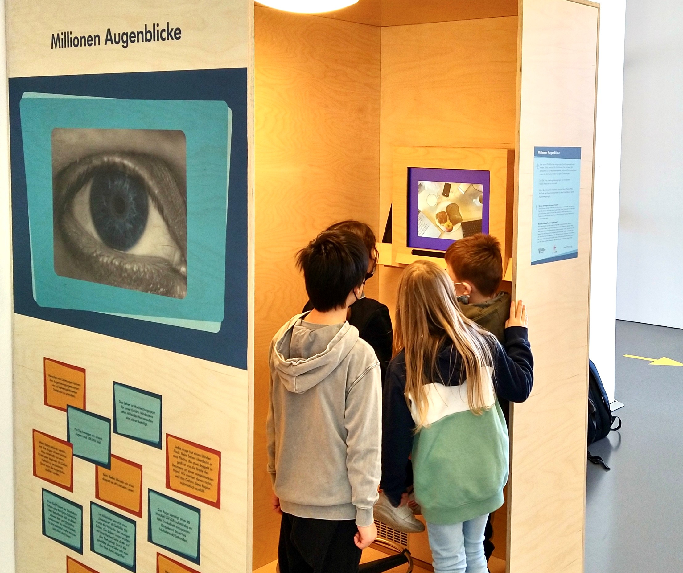 Mit dem temporären Exponat „Millionen Augenblicke“ konnten die Wahrnehmungsforscher im Gießener Mathematikum Tausende von Daten erheben. Bildnachweis: Ben de Haas.