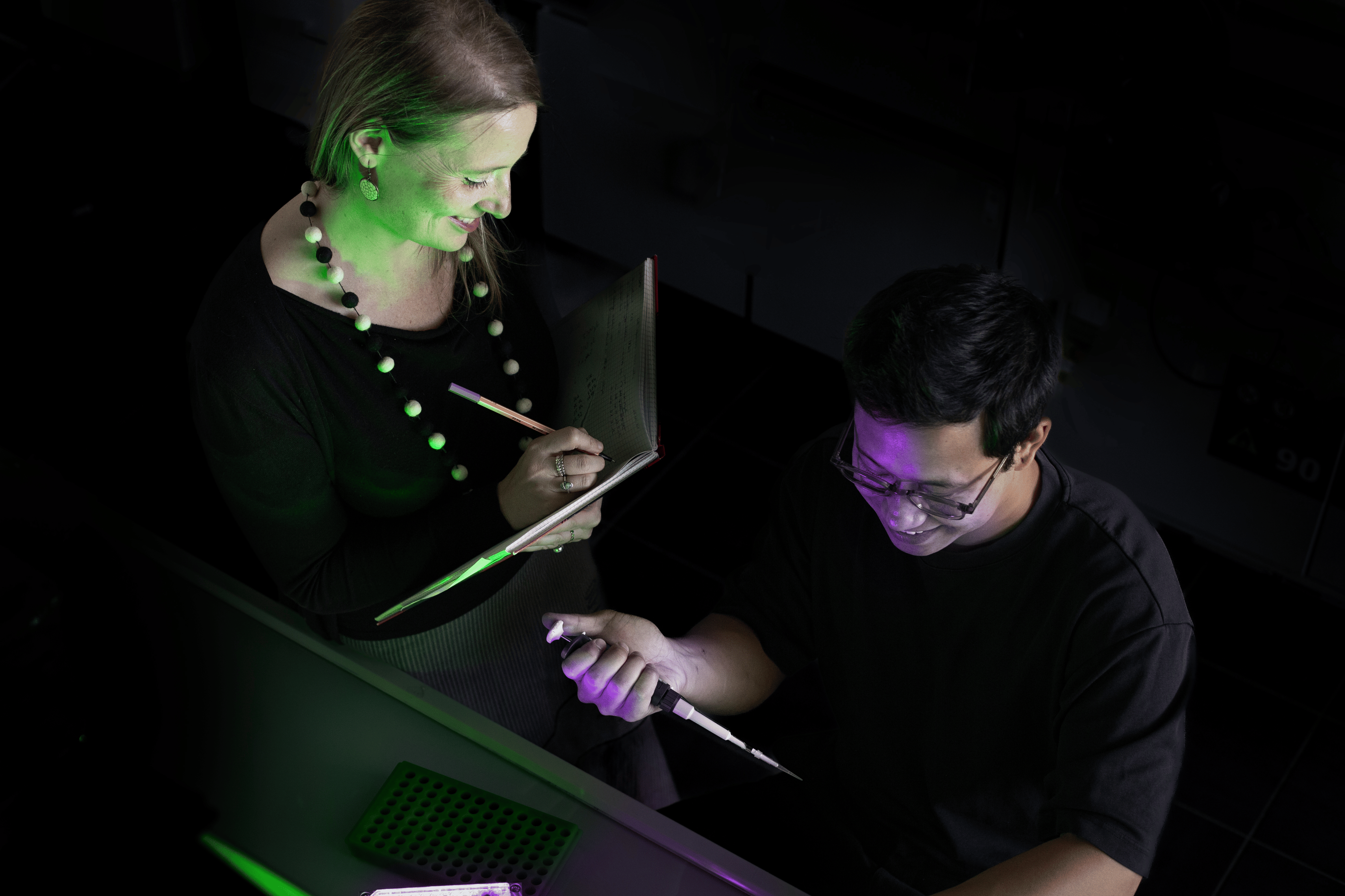 Bild zur PM vom 2.9.2025 - Molekularer Lichtschalter.jpgOlalla Vázquez und Van Tuan Trinh. Foto: Jessica Epsteinhttps://www.fcmh.de/de/aktuelles/upload/20250902lichtschalter-1/viewhttps://www.fcmh.de/@@site-logo/fcmh_logo.gif