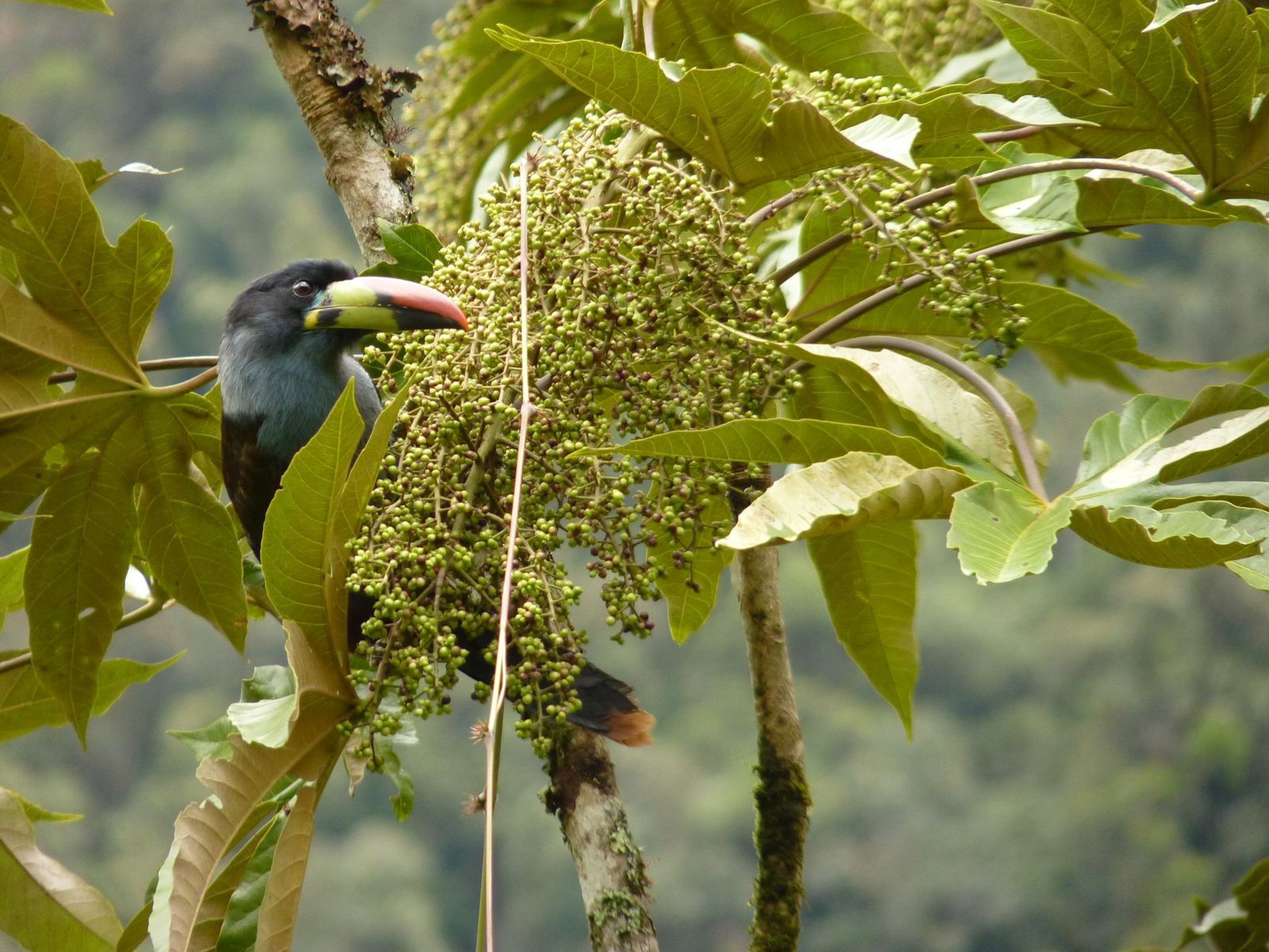 Samenausbreitende Vögel wie der Blautukan spielen eine entscheidende Rolle für die Regeneration tropischer Wälder, in denen die meisten Baumarten auf die Samenausbreitung durch Tiere angewiesen sind. Bildnachweis: Matthias Schleuning.
