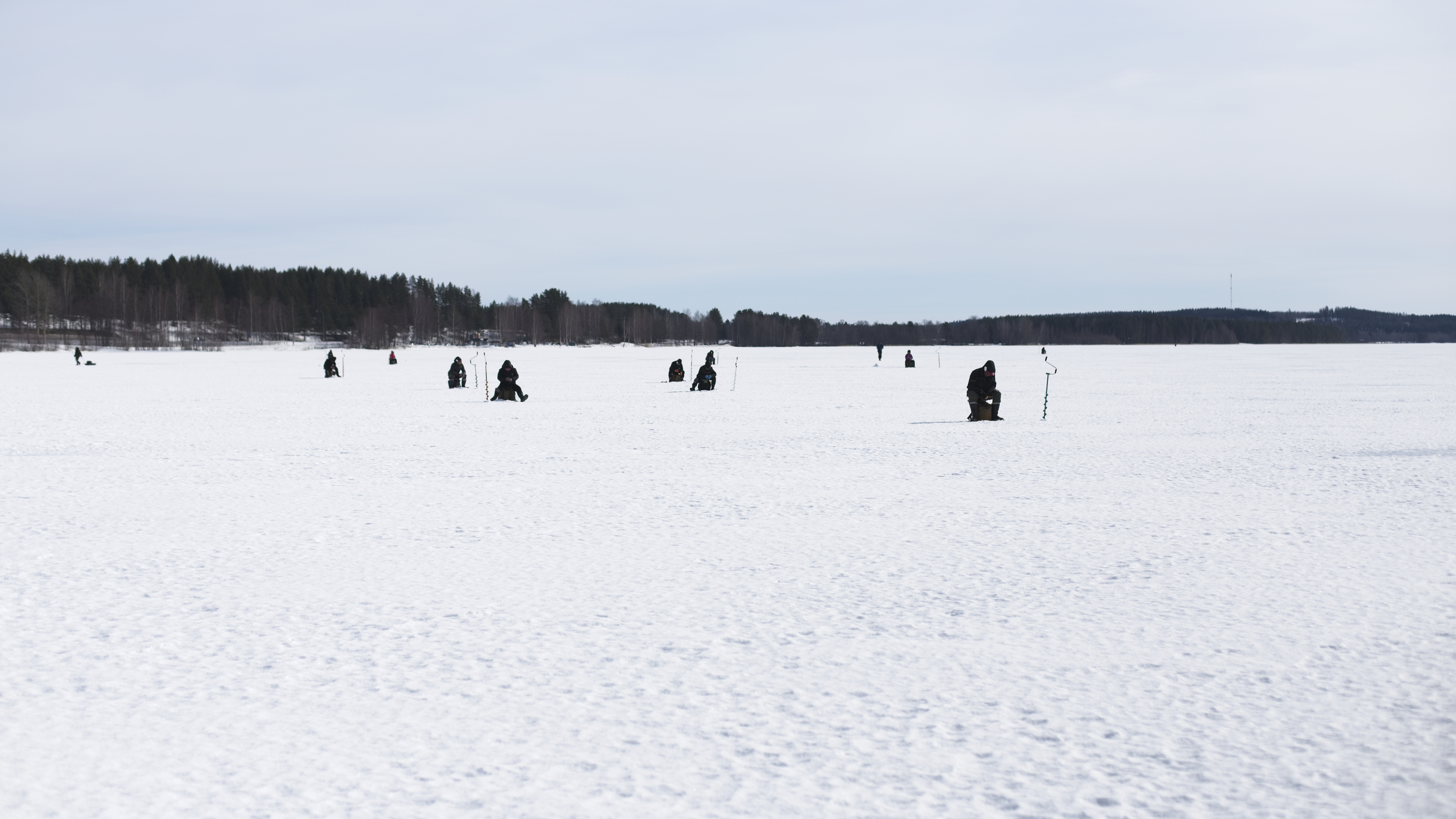 Feldforschung auf dem Eis: In Finnland erhielten Forscher*innen Einblicke in die menschliche Entscheidungsfindung bei der Nahrungssuche. Bildnachweis: Petri T. Niemelä.