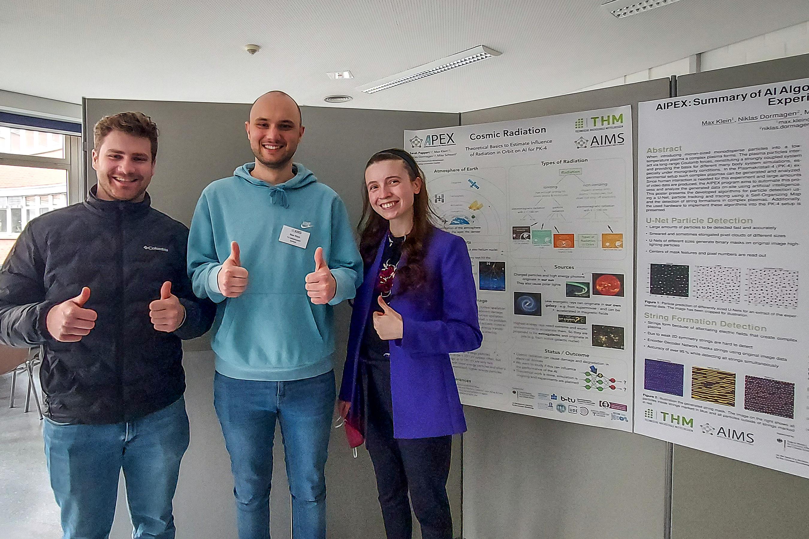 Niklas Dormagen, Max Klein und Sarah Pappert (v.l.) forschen an der THM an Einsatzmöglichkeiten Künstlicher Intelligenz für die Plasmaforschung im Weltraum. Foto: THM.
